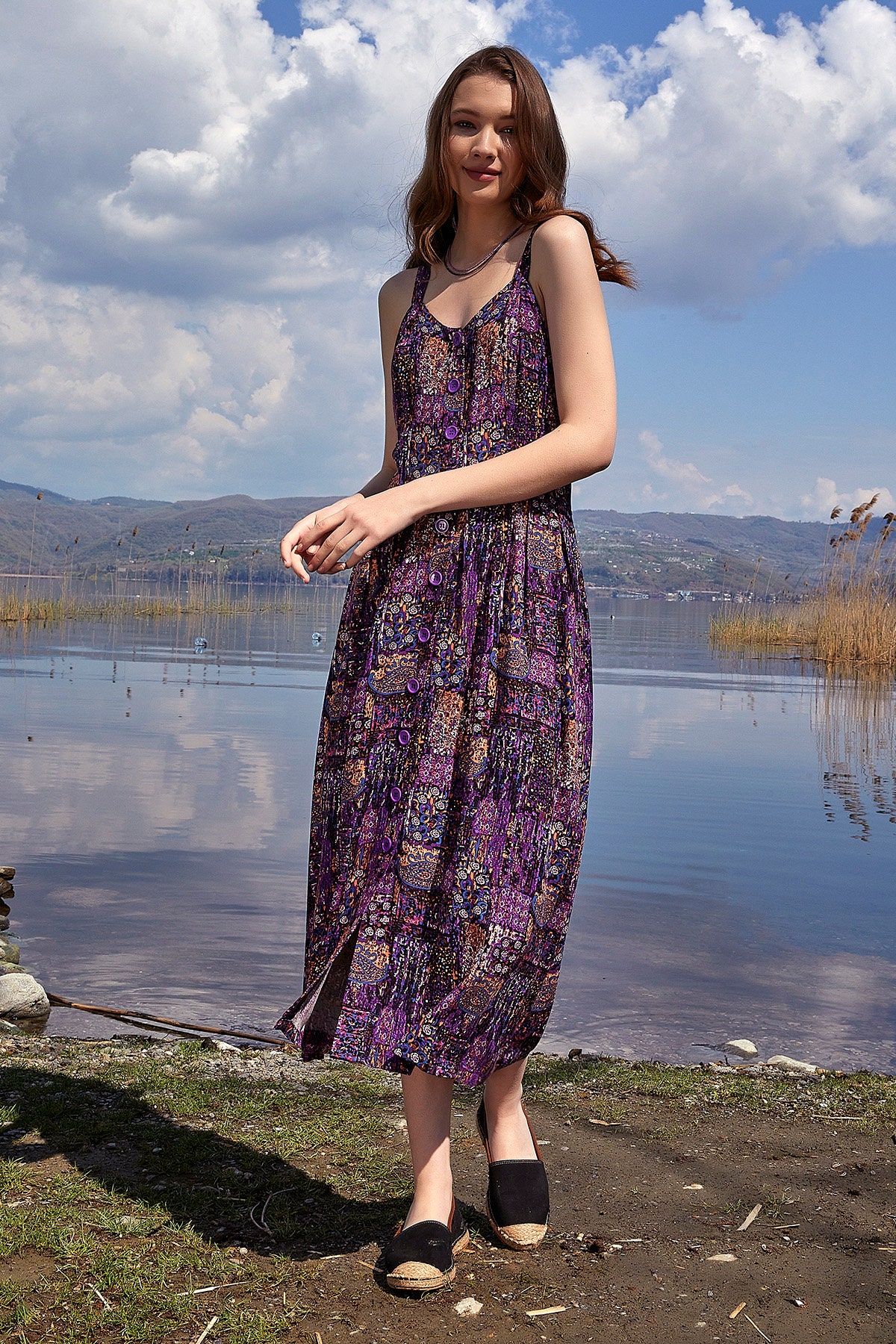 Be the first to review “Bohemian Button Down Maxi Dress Wide Strap Purple”