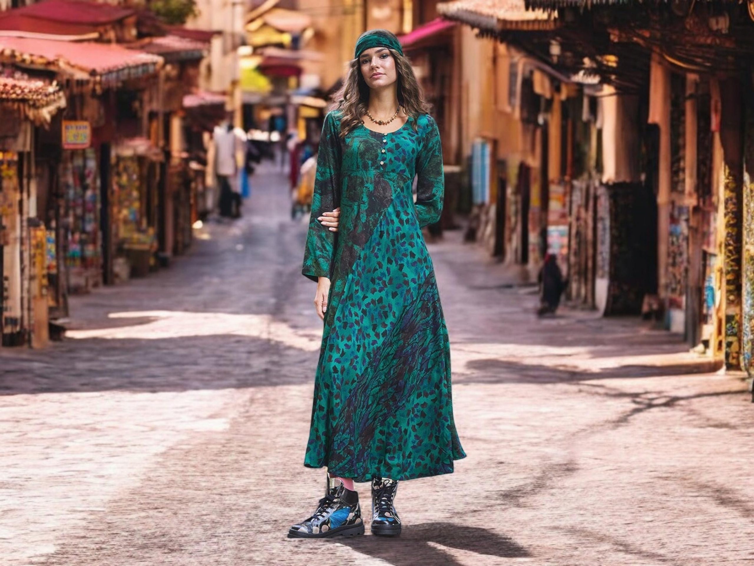 This beautifully designed maxi dress is made from 100% breathable viscose fabric, ensuring comfort and elegance all day long. The soft, natural texture does not trap heat, making it ideal for cooler seasons.