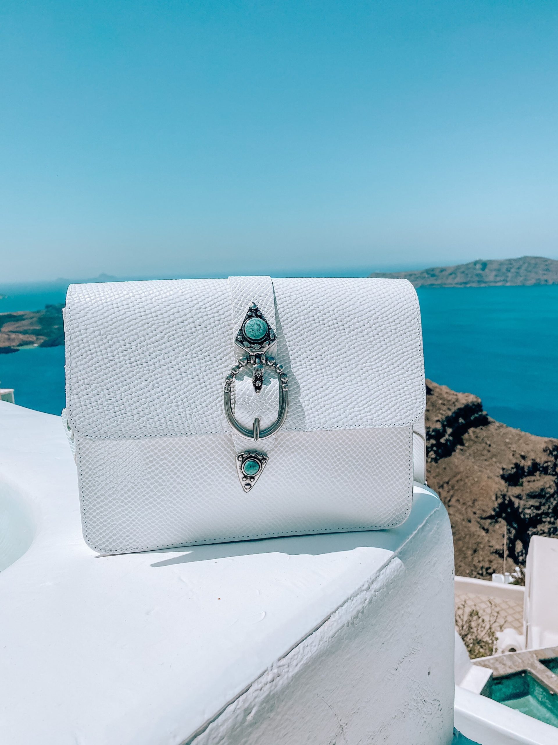 Introducing our stunning handmade Leather Purse, perfect for summer, crafted from the highest quality soft white leather with unique decoration and adorned with beautiful turquoise onyx beads on the central buckle. This gorgeous purse can be worn crossbody, on the shoulder, or carried as a handbag and is the ideal choice for all women. Shop our one-of-a-kind accessory only at us Store on Etsy.