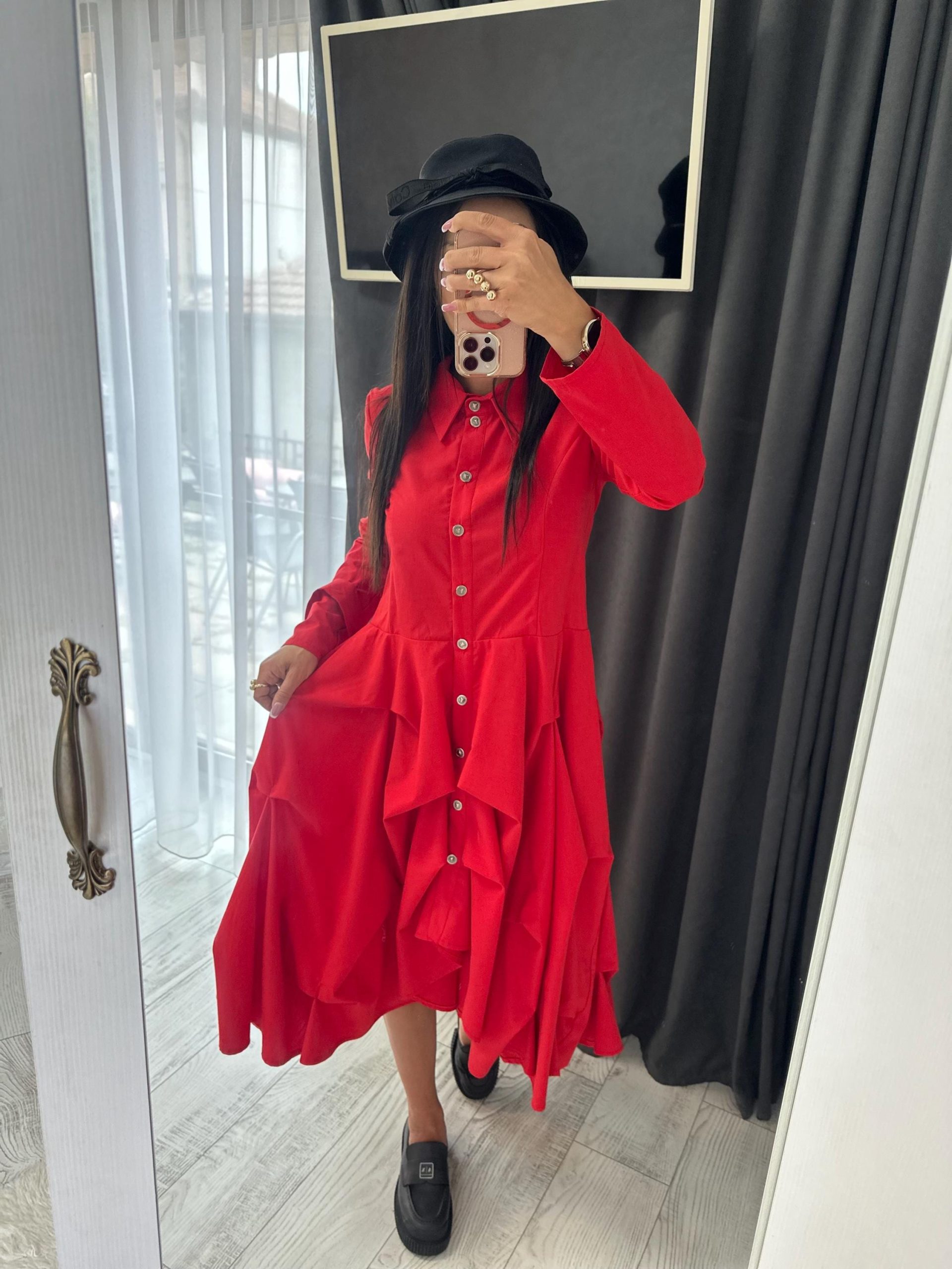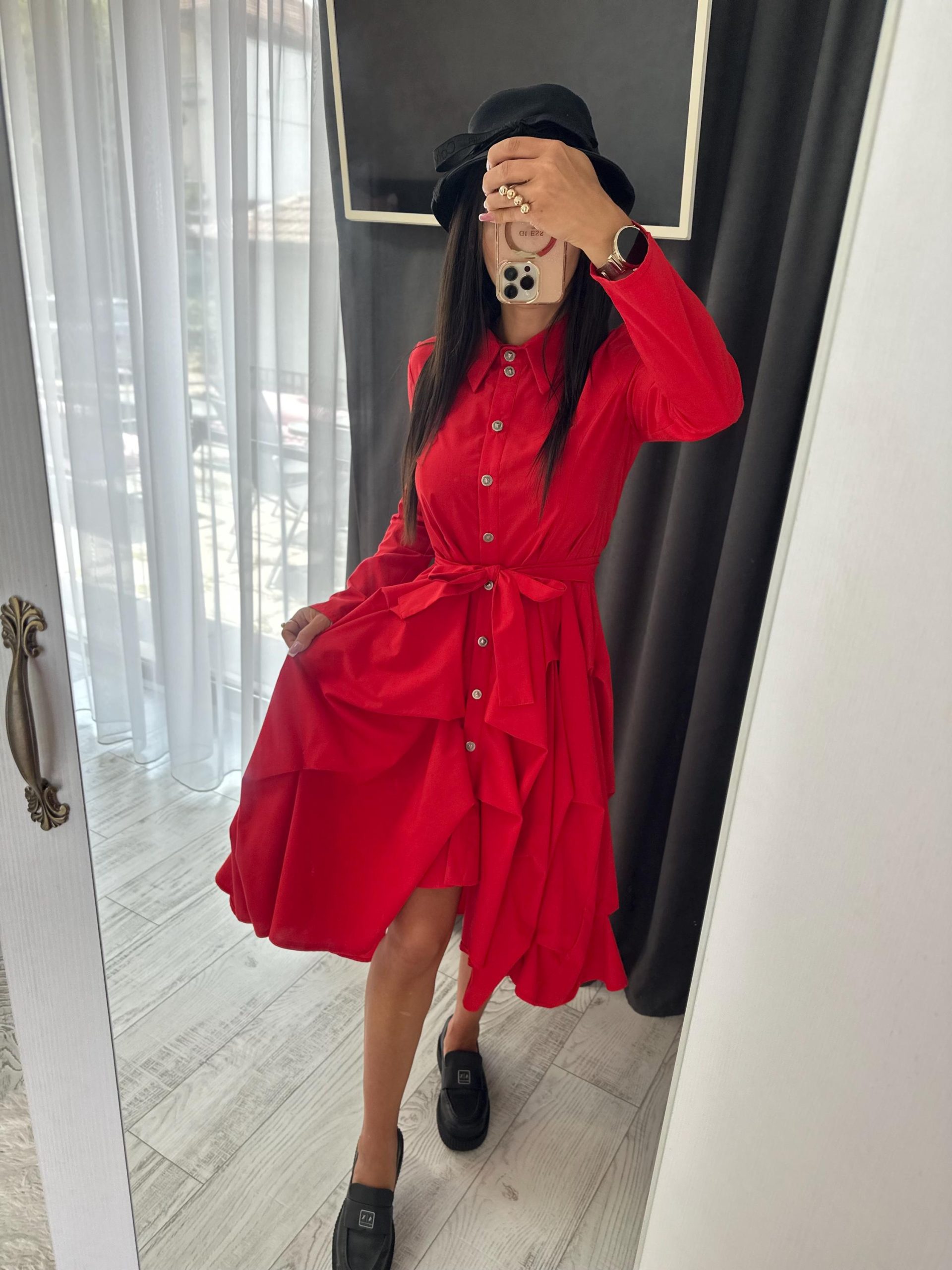 Be the first to review “Red Flared Shirt Dress With Sleeves Loose Fit”