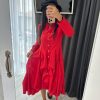 Red Flared Shirt Dress With Sleeves Loose Fit